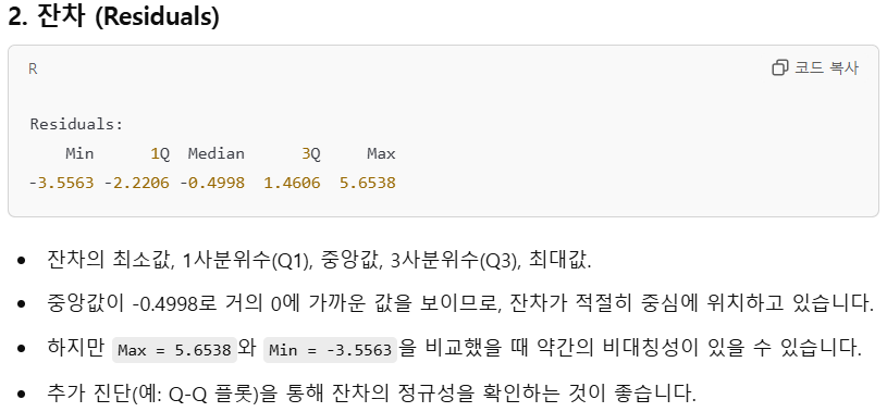 (1) 잔차 표준 오차 (Residual Standard Error):